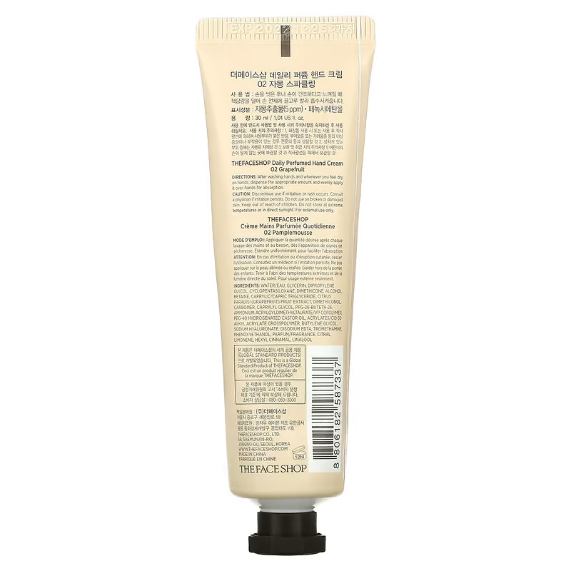Ontdek onze The Face Shop Daily Perfumed Hand Cream met de verfrissende geur van grapefruit!