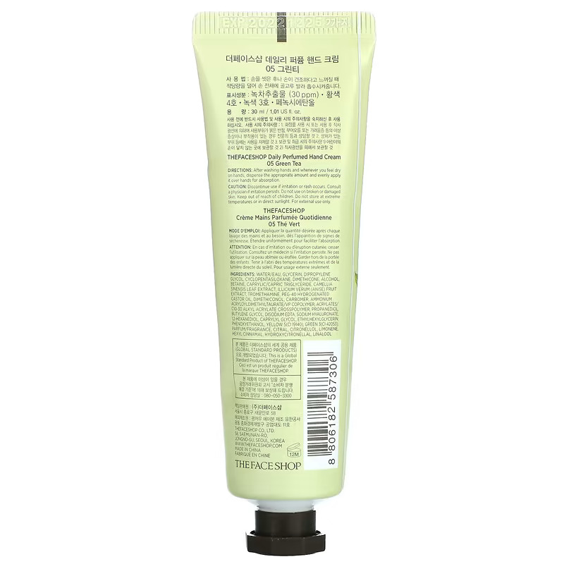 Trakteer jezelf op de luxe van een zachte en heerlijk geurende huid met onze The Face Shop Daily Perfumed Hand Cream, Green Tea.